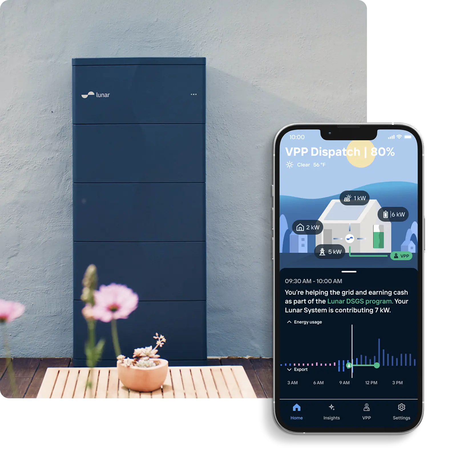 The Lunar App puts your whole energy system in your hand. Watch it work. Track your savings. Stay protected — whatever the weather brings. Award-winning design that makes the complex feel simple.