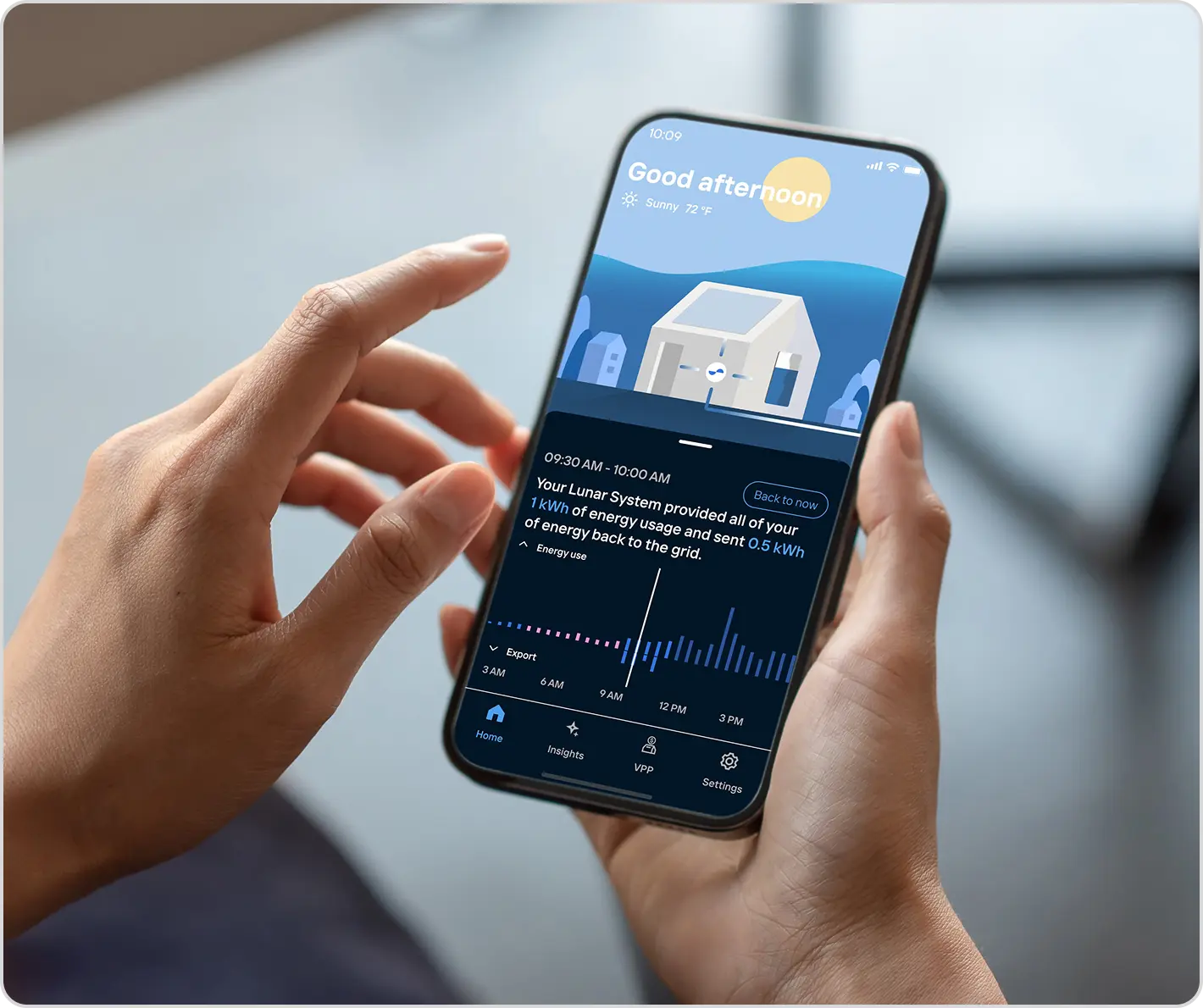 Any battery system can store energy. Only Lunar AI learns, adapts, and acts for you—every single day—to help you save more, earn more, and make the most of your home’s energy.