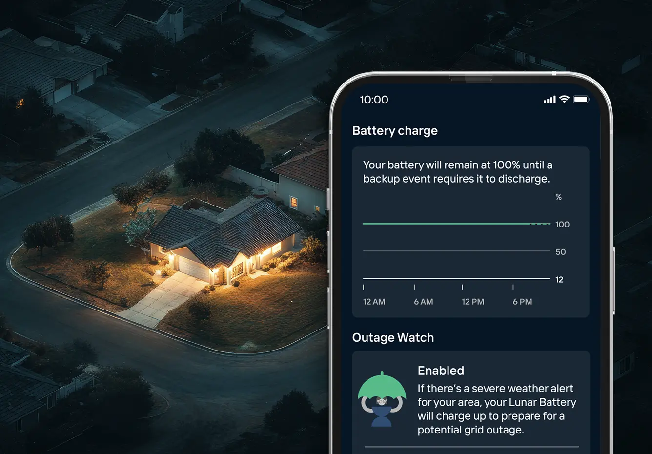 The app shows real-time solar, battery, and home energy use. Lunar AI automates decisions, optimizing for weather, rates, and habits so you get the most out of your system with less effort. With the Outage Watch feature, Lunar monitors for severe weather and prepares your system for an extended outage automatically.
